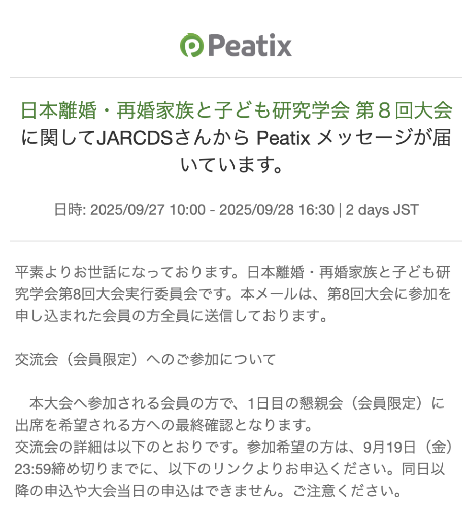 A3. はい、「懇親会のみ」でお手続き可能です。9月13日までにPeatixからお手続き願います。
